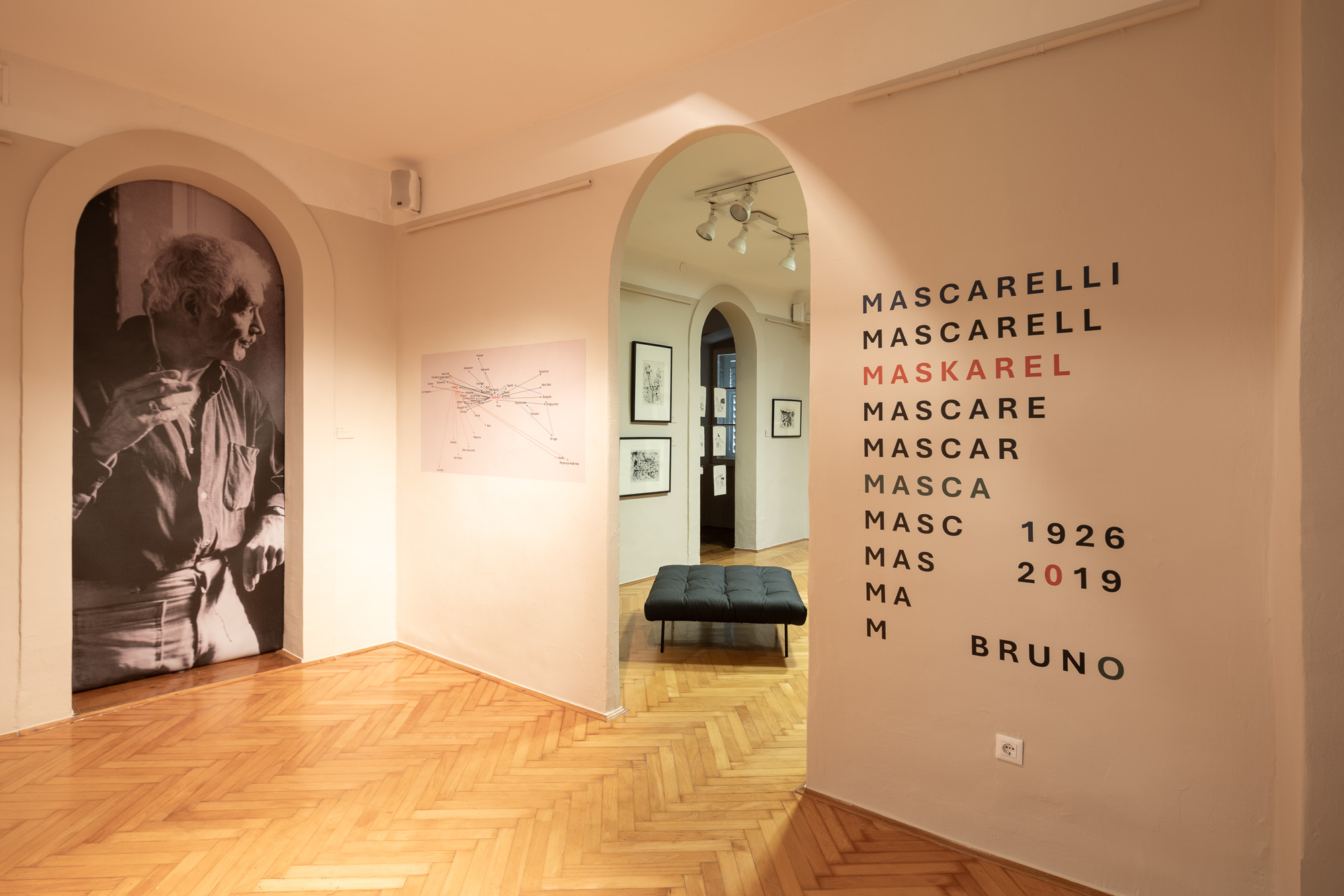 Izloženo je tridesetak djela među kojima se ističu crteži koji tematiziraju pejzaž kao i oni u kojima se iščitava prepoznatljiv Mascarellijev stilizirani lik žene. Na slikama dominiraju geometrizirani krajolici, a Curto ističe dvije slike koje u kolekciji imaju posebnu važnost: sliku „Gradilište na Krasu“ iz 1988. godine kao prvu sliku koju mu je Mascarelli poklonio te sliku „Limski kanal (u sutonu)“ kao zreli primjer autorova pejzažnog slikarstva. Uz slike i crteže izložena je i dokumentarna građa koja Mascarellija prikazuje kao kozmopolitskog umjetnika koji je živio na relaciji Rovinj – Pariz, izlagao u renomiranim galerijskim prostorima u Europi i svijetu, uvijek se vraćao u Rovinj za koji je ostao zauvijek vezan.